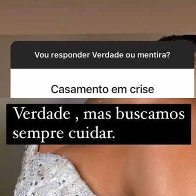 Respondendo as questões para falar verdades e mentiras, ela falou sobre a fase atual e sobre o relacionamento estar em crise. “Verdade, mas buscamos sempre cuidar”, disse a cantora.