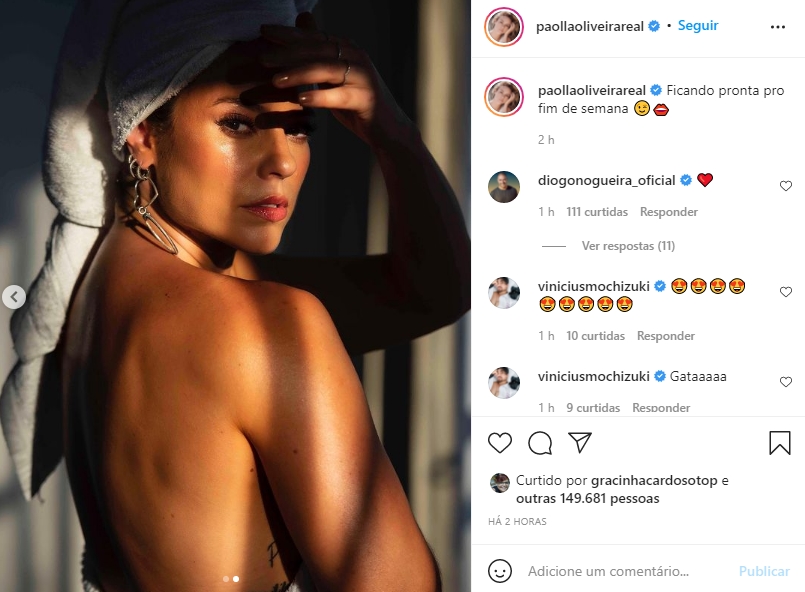 Paolla Oliveira (39) começou o dia causando nas redes sociais, ao deixar algumas tatuagens a mostra nesta sexta-feira, 15.