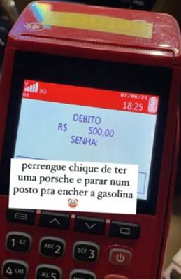 A ex-BBB Viih Tube gastou R$ 500 para abastecer seu carro, um modelo Porsche, de gasolina. A youtuber exibiu a notinha da compra orgulhosa nos Stories de sua conta no Instagram, e classificou a situação como um “perrengue chique”.