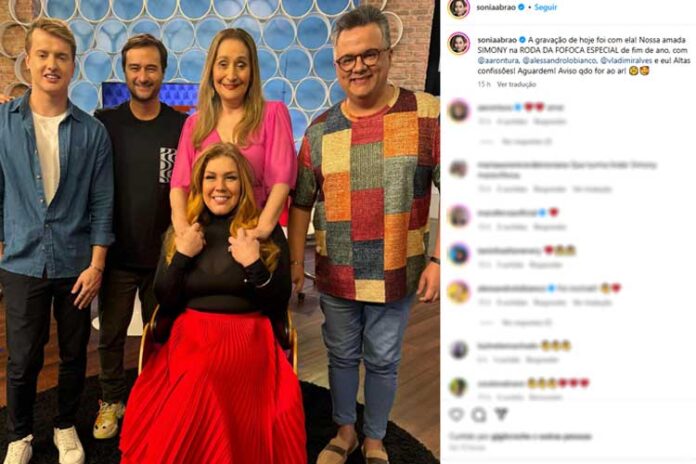 Dando um gostinho do que está por vir, Sonia afirmou que os telespectadores irão se surpreender com muitas confissões, feitas pela famosa. “A gravação de hoje foi com ela! Nossa amada Simony, na ‘Roda da Fofoca Especial’’ de fim de ano. Altas confissões! Aguardem!! Aviso quando for ao ar”, afirmou a apresentadora divulgando registros dos bastidores.