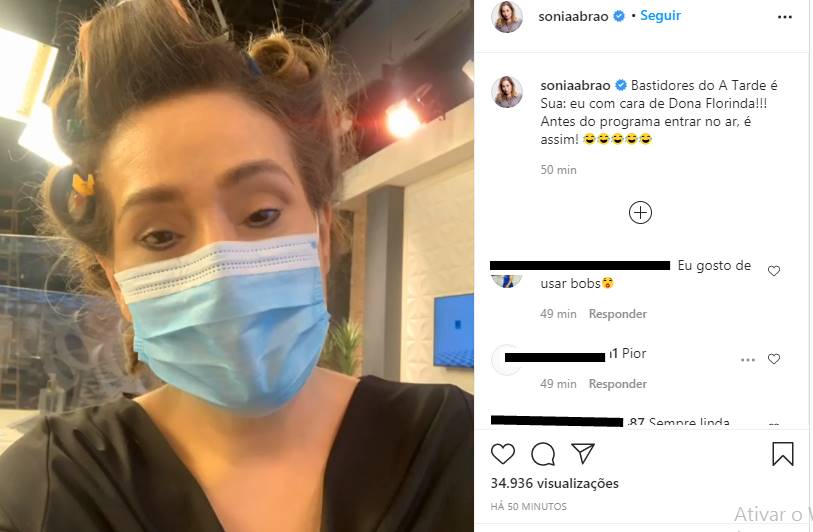 A apresentadora Sonia Abrão, que comanda o programa ‘A Tarde É Sua’, mostrou um momento nos bastidores da atração. No Instagram, a comunicadora surgiu com os cabelos enrolados em bobes e se comparou com a Dona Florinda, personagem do seriado ‘Chaves’.