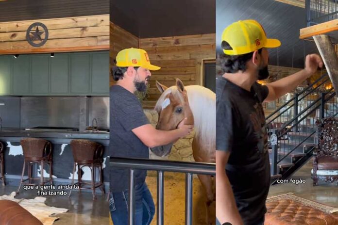 “É um cantinho bem acolhedor, que faz com que a gente se desconecte do mundo lá fora e pense em música, cavalo e boas histórias”, afirmou o cantor, mostrando outros detalhes da construção.