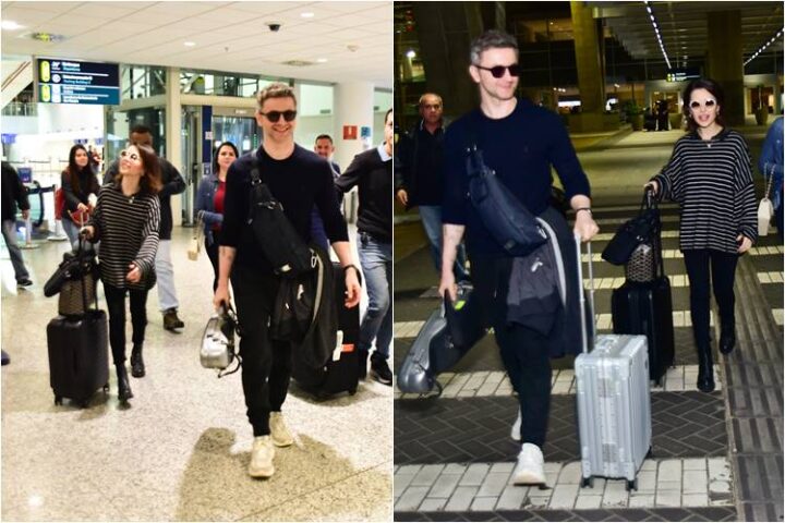 Após uma turnê juntos pela Europa, Sandy e Lucas Lima estão de volta ao Brasil. Nesta segunda-feira (16), o ex-casal foi fotografado sorridente no desembarque do aeroporto de Viracopos em Campinas, São Paulo. A cantora fez vários shows que contou com a presença do ex-marido. Os shows foram em: Lisboa e Porto em Portugal, Dublin na Irlanda, e Londres na Inglaterra.