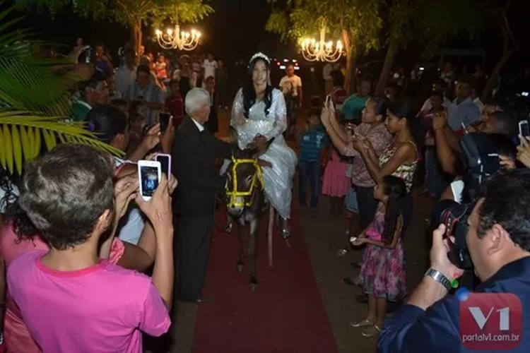 Stefhany Absoluta, conhecida pelo hit “Sou Stefhany”, aquele do CrossFox, se casou no sábado (24) em Valença, no Piauí. E em vez de chegar à cerimônia de carro, a cantora gospel usou um jegue.