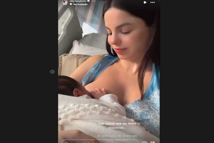 Sthefany Brito, irmã de Kayky Brito, publicou em seu perfil no Instagram nesta quarta-feira (11) o primeiro registro alimentando o filho recém-nascido, Vicenzo, fruto do seu relacionamento com o empresário Igor Raschkovsky.