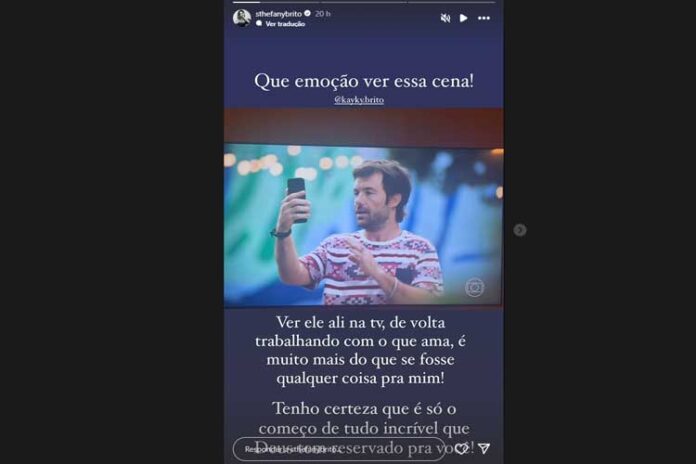 “Que emoção ver essa cena! Ver ele ali na TV, de volta trabalhando com o que ama, é muito mais do que qualquer coisa pra mim! Tenho certeza de que é só o começo de tudo incrível que Deus tem reservado pra você!“, destacou Sthefany na legenda da publicação.