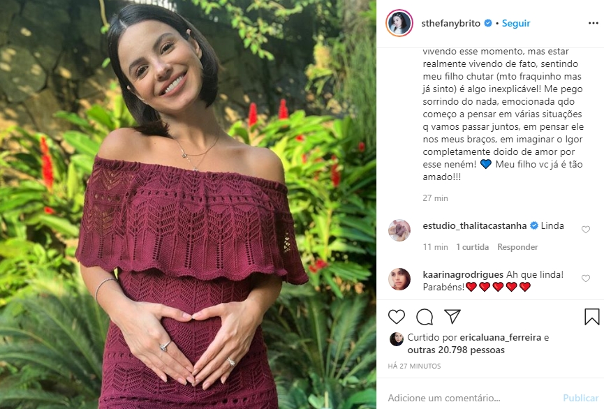 E por fim ela falou como está se sentindo, e o quanto de amor já tem pelo pequeno. “Me pego sorrindo do nada, emocionada quando começo a pensar em várias situações que vamos passar juntos, em pensar ele nos meus braços, em imaginar o Igor completamente doido de amor por esse neném! Meu filho você já é tão amado!”.