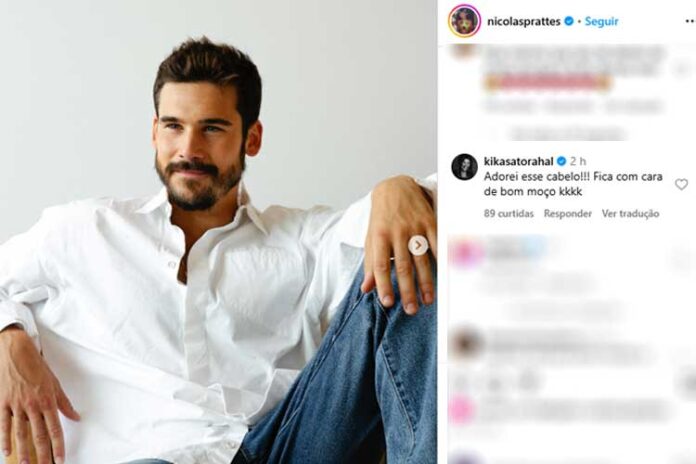 Nicolas Prattes surgiu com um novo visual nas redes sociais. Em post compartilhado pelo intérprete do personagem Rudá em “Mania de Você”, ele aparece com o cabelo mais curto ganhando comentários da sogra, Kika Sato.