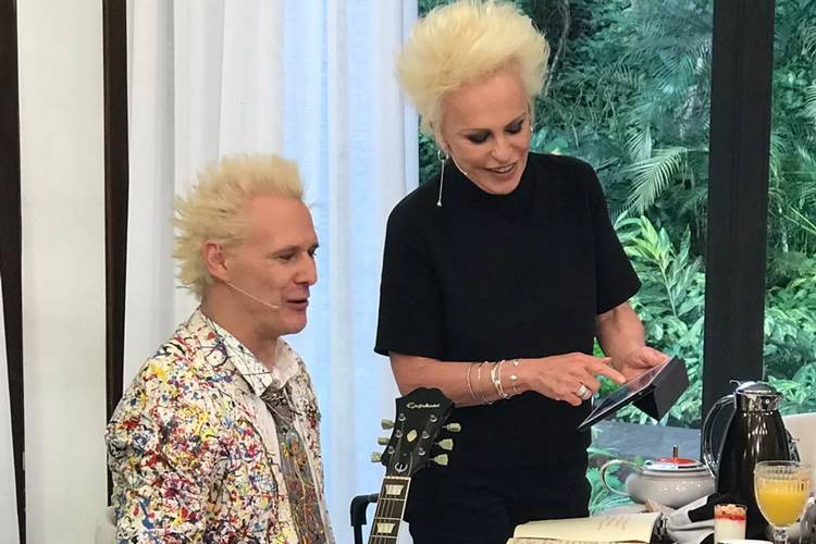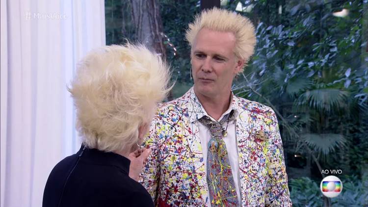 “O seu cabelo está ótimo!”, disse Supla entrando na brincadeira. “Tentei fazer mais parecido possível do seu”, respondeu a loura.