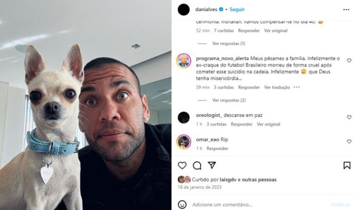 Em comentários feitos no dia de hoje, 11 de março, os internautas vem escrevendo: “Meus pêsames a família. Infelizmente o ex-craque do futebol Brasileiro morreu de forma cruel após cometer esse suicídio na cadeia. Infelizmente, que Deus tenha misericórdia…“, reagiu um seguidor. “Descanse em paz“, comentou mais um. “RIP“, escreveu um terceiro.