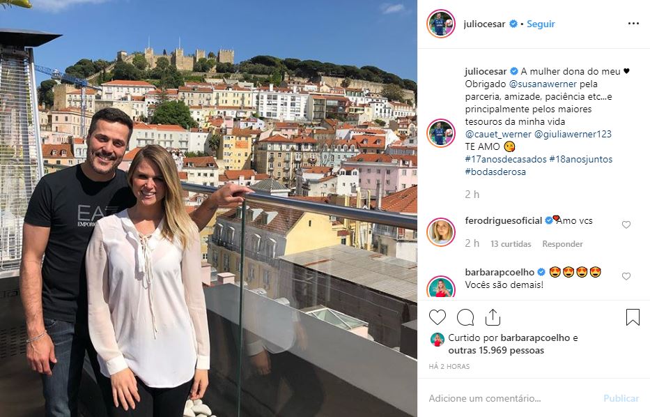 Depois foi a vez de Julio Cesar usar suas redes sociais para celebrar a data mais que especial e fazer uma declaração para a esposa.