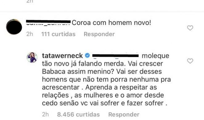 Mas Tatá não deixou passar batido e detonou o garoto.