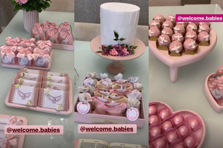 Thaeme organizou uma festa para celebrar o primeiro mês de Liz. A festa temática é sobre o Espírito Santo. No Stories do Instagram a cantora mostrou alguns detalhes da decoração, que foi toda em rosa e branco, e também tem os docinhos enfeitados com uma pomba branca