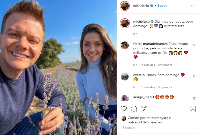 Em seu perfil do Instagram ele fez questão de comemorar o momento dois dois: “Dia lindo por aqui… bom domingo! @tatafersoza”
