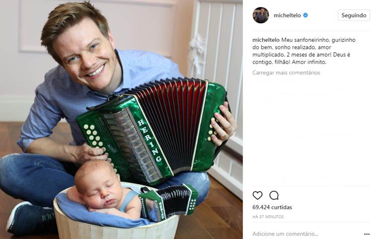 Michel Teló também comemorou postando uma foto fofa ao lado do filho. “Meu sanfoneirinho, gurizinho do bem, sonho realizado, amor multiplicado. 2 meses de amor! Deus é contigo, filhão! Amor infinito”, escreveu Teló.
