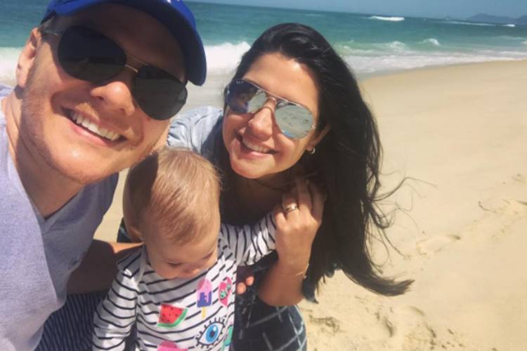Thais Fersoza e Michel Teló aproveitaram a segunda-feira (11) de sol no Rio de Janeiro para levar a pequena Melinda à praia! No Instagram, a mamãe coruja compartilhou uma foto do trio se divertindo na areia.