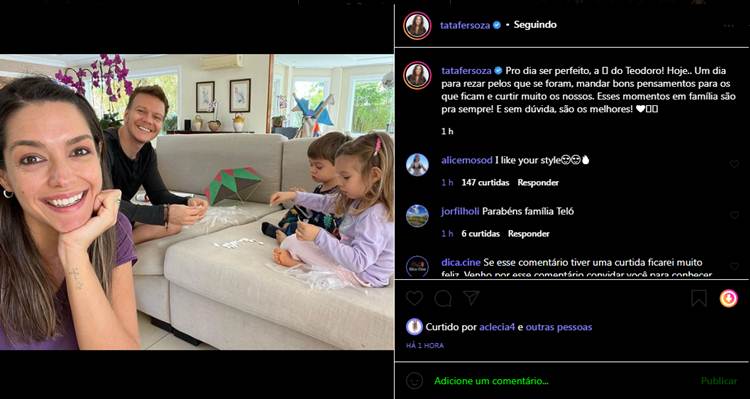 Na legenda, ela celebrou o dia em família. “Pro dia ser perfeito, a pipa do Teodoro! Hoje.. Um dia para rezar pelos que se foram, mandar bons pensamentos para os que ficam e curtir muito os nossos. Esses momentos em família são pra sempre! E sem dúvida, são os melhores! ❤”, escreveu.