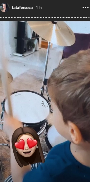 Melinda esclareceu que queria tocar “Let It Go”, sucesso da animação Frozen. Teodoro logo em seguida preferiu a bateria de Michel Teló e foi tocar um pouco, o que deixou a mamãe orgulhosa demais.