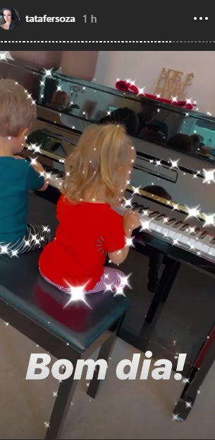 Isolada em casa, a apresentadora flagrou os filhos curtindo um momento musical no piano. Os meninos surgiram sentados lado a lado e tocaram músicas nas teclas e chegaram até a identificar o que estavam tentando tocar.