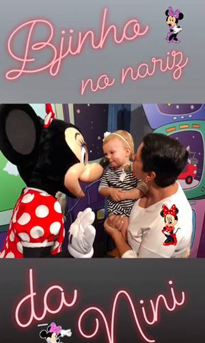 No click, a atriz mostrou a felicidade de Melinda ao conhecer a personagem Minnie. “Qd viemos em 2016, eu estava grávida da Melinda e minha mãe chorou ao ver a Minnie. Foi lindo, emocionante… ela sempre amou a Minnie e foi demais ver a reação dela ao conhecer sua personagem favorita! Agora, Melinda com 1 ano e meio também é encantada pela Minnie, chama de “Nini” rsrs e é um amor só com a q ela tem em casa.. a dinda já deu até um banquinho da Nini pra ela q ela leva pra todos os cantos da casa pra sentar.. esse encontro aí foi ainda mais emocionante! Ela gritava, chamava ela, queria tocar na bochecha dela e na hr de ir embora chorou e ficou dizendo “mais Nini, vem Nini, vem brincar com a Didinda..” e o coração da mãe como fica?????? Vcs nem imaginam.. minha bochecha ficou dolorida do tamanho do meu sorriso q não saía do rosto! Kkkkkk OBRIGADA SENHOR! #MomentosÚnicos #MomentosMágicos“, escreveu a morena, que ainda é mãe de Teodoro, do seu casamento com o cantor, Michel Teló.