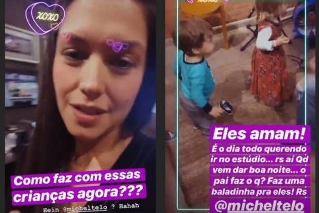 A noite desta última quarta-feira (29) foi bastante animada na casa da atriz Thais Fersoza e o cantor Michel Teló. Isso porque os filhos do casal, Melinda, de 2 anos, e Teodoro, de 1 ano, não estavam muito afim de dormir e foram fazer uma pequena festinha ao som do hit ‘Vai Ter Que Rebolar’, da dupla Sandy e Junior.