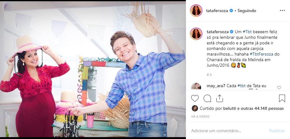 A atriz aproveitou a época junina e fez um chá de bebê caipira. “Um#Tbt beeeem feliz só pra lembrar que Junho finalmente está chegando e a gente já pode ir sonhando com aquela canjica maravilhosa…. hahaha #TbtFersoza do Charraiá de fralda da Melinda em Junho/2016”, escreveu.