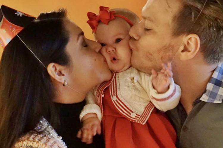Thais Fersoza postou em seu Instagram, uma foto de um ‘beijo sanduíche’ em sua filha Melinda. A atriz e o marido Michel Teló ‘esmagaram’ sua princesinha com um beijão.