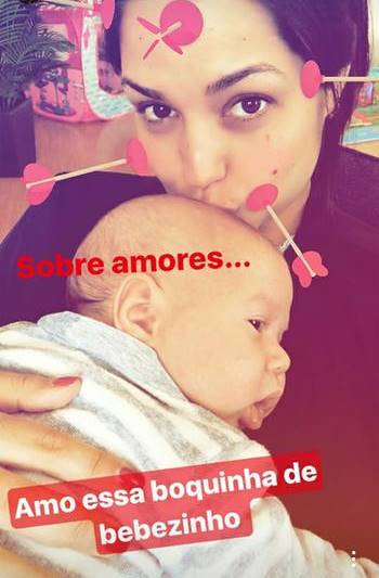 Na imagem, ela apareceu com o irmão de Melinda no colo e ‘babou’ pelo bebê: “Sobre amores…Amo essa boquinha de bebezinho”.