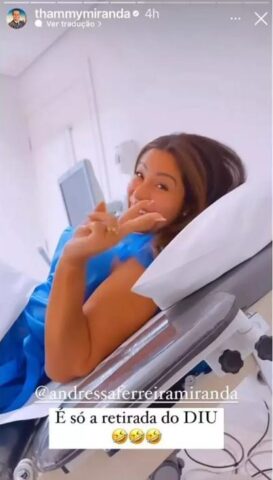 Através de sua conta oficial do Instagram Stories, Thammy afirmou que estava levando Andressa para realizar alguns exames: ”E aí a gente é pai e leva a criança para escola, a gente é político e cuida da cidade de São Paulo… Mas, é marido também! Levando minha princesa no médico que ela vai fazer um procedimento, basiquinho e rapidinho”, destacou o político.