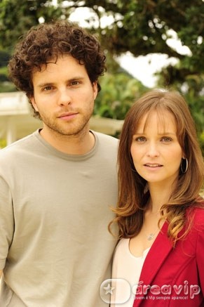 Thiago Fragoso e Fernanda Rodrigues posam juntos no primeiro dia das gravações de O Astro no Rio de Janeiro.
