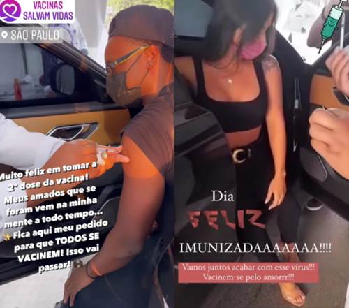 Nos stories do Instagram, o pagodeiro e a ex-BBB publicaram fotos do momento em que se vacinaram contra a Covid-19 em um sistema de Drive-trhu em São Paulo. Até aí nada demais. O que deixou os fãs em alerta foi o detalhe laranja da porta do automóvel que aparece nos dois perfis.