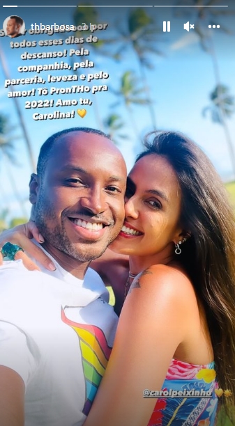 Na sequência ele agradeceu pelos momentos vividos nesses últimos dias, e exaltou as qualidades da eleita ao seu coração: “Pela companhia, pela parceria, leveza e pelo amor! Tô pronto pra 2022! Amo tu, Carolina”, comentou na legenda.