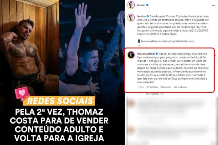No texto, o portal do apresentador do “Fofocalizando” diz que o ator teria parado pela segunda vez de “vender” tais conteúdos. No entanto, o próprio Thomaz comentou no post explicando o que realmente aconteceu.