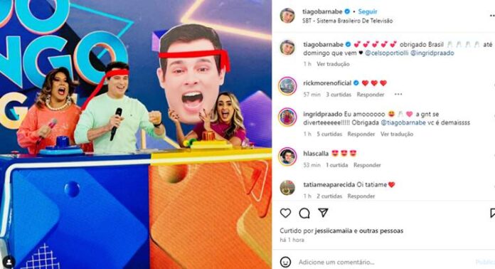 Nos comentários, seus seguidores reagiram: “Já estava com saudade“, disse uma. “Eu amoooooo 😆🥂🩷 a gnt se diverteeeeee!!!!! Obrigada @tiagobarnabe vc é demaissss“, comentou outra. “O melhor programa ❤️❤️“, destacou mais um. “Lindo, estava com saudade, ainda bem que voltou para o ao vivo“, enfatizou outra seguidora. “Ameeeeiiii e rir muito com você hoje rsrs“, afirmou outra fã.