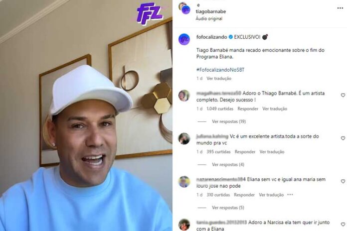 Tiago Barnabé, conhecido pela personagem Narcisa, usou seu perfil no Instagram nesta última terça-feira (26) para tranquilizar o público após a exibição do último “Programa Eliana” no SBT.