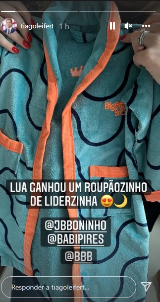 Através de seu Instagram, o ex apresentador Global exibiu o presente da menininha, um ‘miniroupão’ imitando o que o Líder do BBB22 ganha quando é coroado.