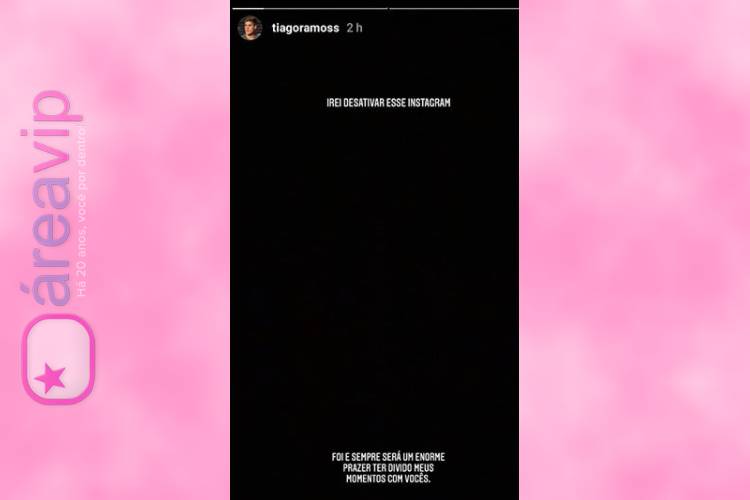 Hoje com mais de 700 mil seguidores somados no Instagram, o modelo promoveu um desabafo em sua conta oficial e surpreendeu o público em pleno início da tarde desta terça-feira (25), em que anunciou que irá desativar a conta. “Irei desativar o Instagram. Foi e sempre será um enorme prazer ter dividido meus momentos com vocês”, escreveu ele, por meio do recurso Stories da plataforma de fotos e vídeos.