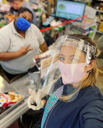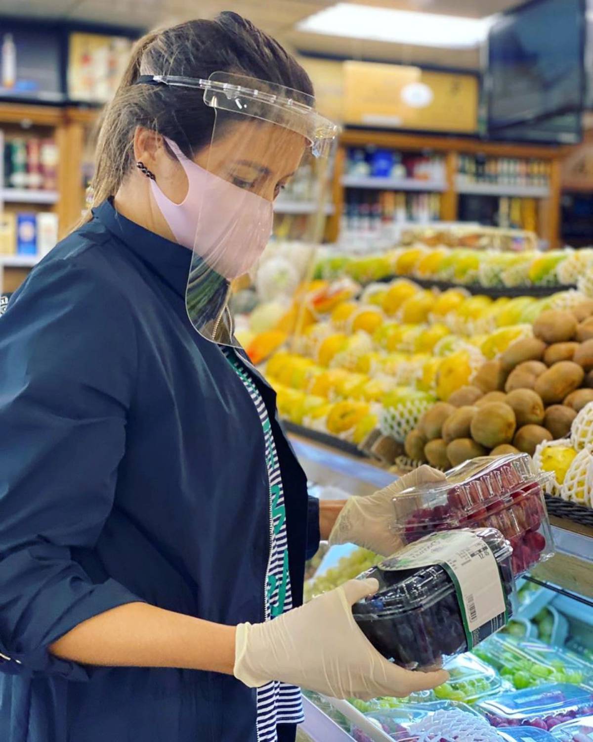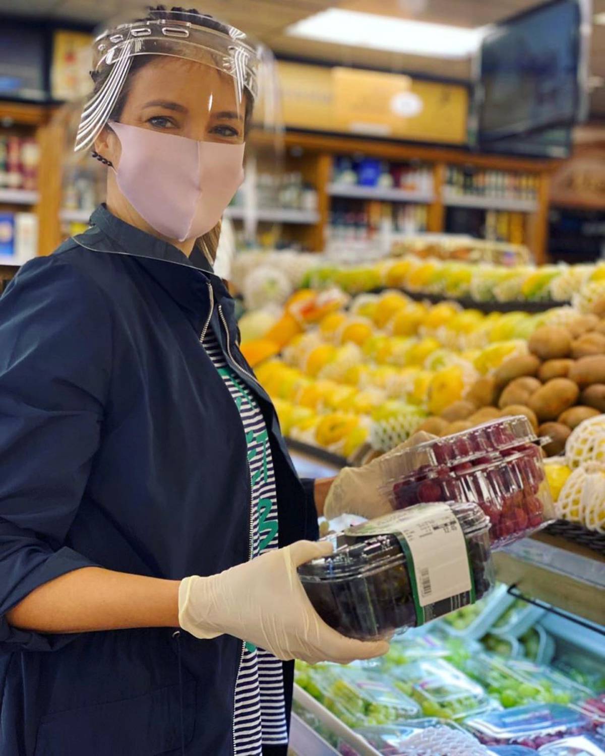 “Uma mulher precavida vale por duas rs! Cabelos presos, luvas descartáveis e máscaras: me sinto protegida e protegendo quem está ao meu redor também, para fazer tranquilamente minhas compras essenciais”, escreveu ela.