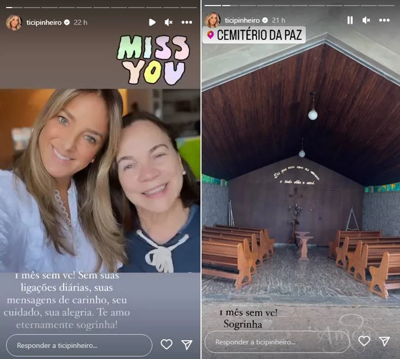 Foi através de sua conta oficial do Instagram Stories que ela prestou homenagem. Em uma imagem que publicou ao lado de Edna ela escreveu o seguinte: ”1 mês sem você! Sem suas ligações diárias, suas mensagens de carinho, seu cuidado, sua alegria. Te amo eternamente, sogrinha.”, disse a apresentadora. Em outro post na rede social ela reforça: ”1 mês sem você”, comentou.