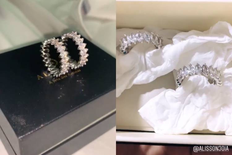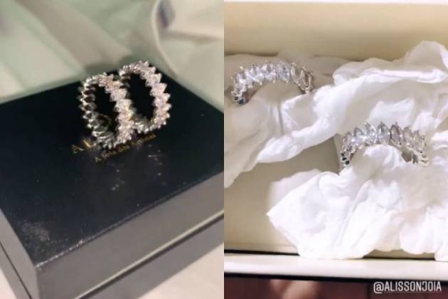 Um dos padrinhos, o humorista Tirullipa, foi o responsável por escolher as alianças do casal, e ele não economizou, não. Nas redes sociais ele mostrou a joia escolhida, uma linda aliança cravejada de brilhantes.