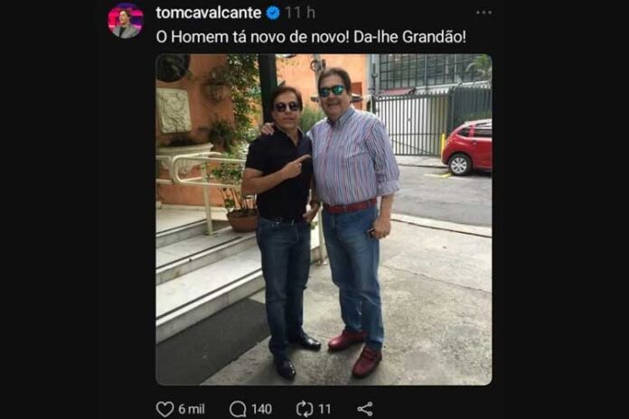 Através de seu perfil no Threads, Tom posou ao lado de Faustão, surpreendendo o público pela jovialidade do comunicador. “O homem está novo de novo! Dá-lhe, Grandão!”, escreveu o famoso na legenda.