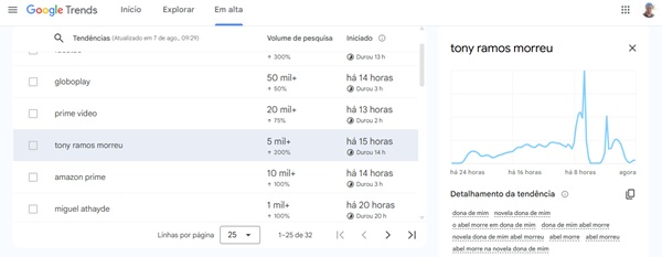 Muitos fãs do renomado ator Tony Ramos se assustaram na manhã desta quinta-feira, 07 de agosto. O motivo? É que o Google Trends destacou o titulo ‘Tony Ramos morreu’ entre os mais pesquisados da internet no Brasil. Porém, existe uma explicação para isso e te contamos neste texto!