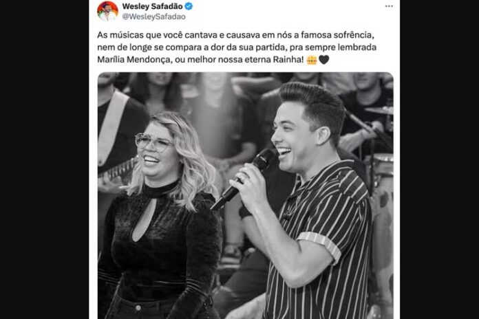 Wesley Safadão afirmou que Marília foi responsável por causar em todos a “sofrência”, que não se compara com a dor de sua partida. “As músicas que você cantava e que causavam em nós a famosa sofrência nem de longe se comparam à dor da sua partida. Pra sempre lembrada, Marília Mendonça, ou melhor, nossa eterna Rainha!”, declarou o cantor.