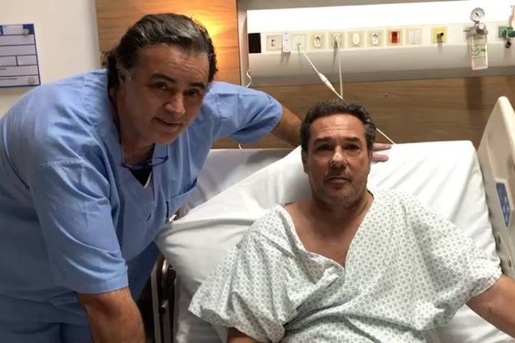 Em seu feed, ele publicou uma foto em que aparece no leito do hospital ao lado do médico responsável pela cirurgia.
