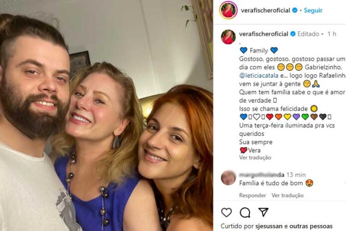 Vera Fischer encontrou seus seguidores no Instagram nesta terça-feira (30) ao compartilhar imagens ao lado do filho, Gabriel Camargo, e da nora, Letícia Catalá. Os três posaram juntos em uma foto familiar, e a veterana aproveitou para falar sobre a importância da família na legenda.