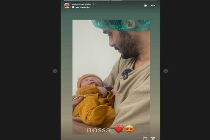 Após o nascimento de Pilar, primeira filha de Victor Sampaio e Fernanda Paes Leme, o empresário compartilhou a primeira foto da herdeira nas redes sociais, se derretendo na legenda. Na imagem compartilhada em seu perfil nas redes sociais, ele aparece a segurando nos braços.