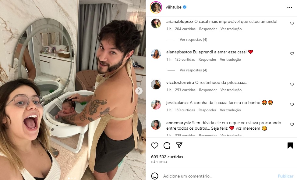 Confira abaixo a postagem completa de Viih Tube, bem como alguns dos comentários que estão sendo deixados para esse casal mais do que especial.