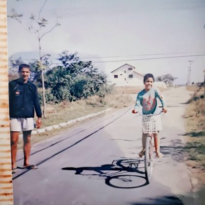 Na foto publicada hoje o cantor compartilhou um registro que recebeu da irmã, onde o tio aparece o ensinando a andar de bicicleta e lamentou mais uma vez o falecimento de Alexandre.