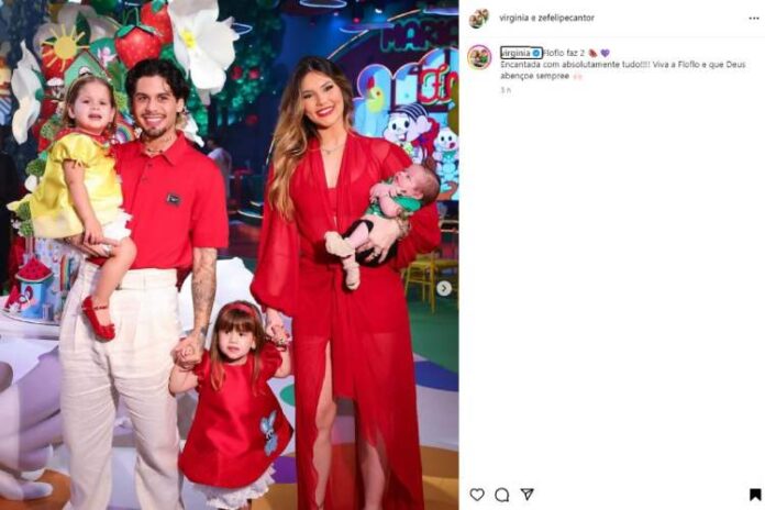Zé Felipe também fez uma linda declaração a filha aniversariante: “Hoje é o dia dela, da nossa florzinha, Maria Flor! Quando eu e a Virginia pensamos que já conhecíamos o maior amor do mundo, veio a Floflo para multiplicar tudo isso. Ela chegou trazendo alegria, personalidade e muito carinho, sendo a melhor companheira da sua irmãzinha Maria Alice, que é só amor por ela. E tenho certeza de que o José Leonardo também já te ama muito!”, iniciou.