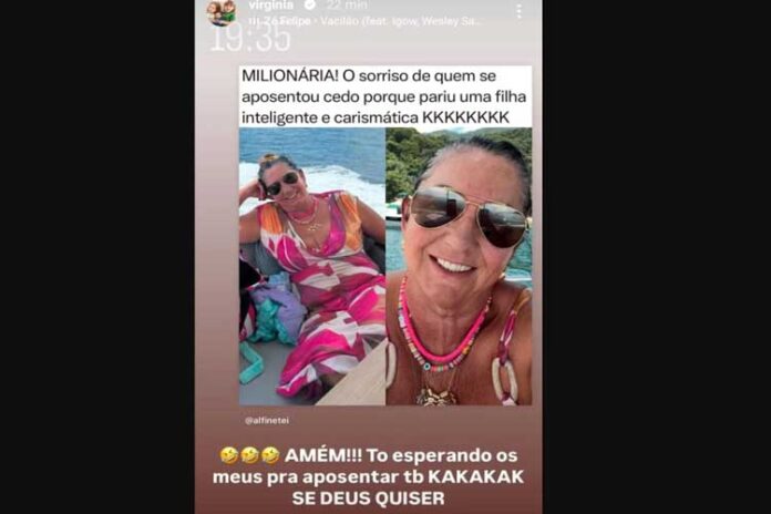 Virginia Fonseca abriu o jogo sobre a possibilidade de se aposentar em post compartilhado em seu Stories no Instagram. Mostrando o print de uma página de fofoca que fala sobre sua mãe, Margareth Serrão, dizendo que ela pôde se aposentar graças à inteligência e carisma da filha, a influenciadora brincou sobre o assunto.